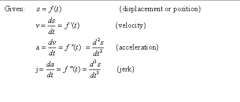 2 Please notice something about these equations. That is the derivative of acceleration with respect to time a. Jerk is defined analogously to the previous two kinematic relations j d a d t.